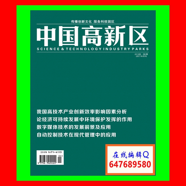 《中国高新区》杂志严格遵循严谨、唯实、优质的方针,力求体现高层次跨学科开放性三大特色,是中国期刊网、中国知网(CNKI)、中国数字化期刊群(万方数据)、中文科技期刊数据库、中国学术期刊(光盘版)全文收录期刊,中国学术期刊综合评价数据库来源期刊。杂志主要围绕全面贯彻新时代中国特色社会主义思想、落实科学发展观,致力于交流社会科学及其与自然科学交叉领域的学术研究成果、理论方法探讨以及实践经验总结,为广大学术研究者提供交流与学习的平台。更好地推动学术交流为促进科技创新、经济繁荣、社会和谐服务。