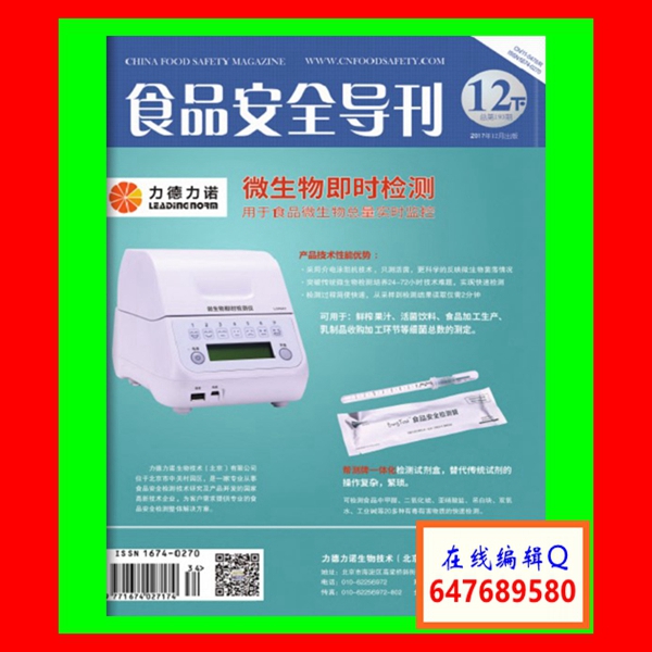 《食品安全导刊》办刊宗旨:本着权威、全面、高端、深入的原则,以构建国家食品安全行业权威信息交流与沟通平台为愿景,以成为食品生产、加工、批发、零售经营企业的安全顾问为己任,以成为食品安全领域值得信赖的服务提供者为目标,力图为食品行业提供全方位的食品安全新闻和信息服务。本刊面向从食品生产、加工到流通销售的全产业链,围绕行业与领域、产业与市场,关注食品生产加工到流通销售的产业链安全。本刊特色:立足于食品安全行业的技术优势,以新闻性、时效性、可读性为特色。