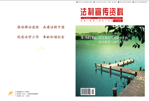 《法制宣传资料》杂志秉承“繁荣法学研究,服务法治建设”办刊宗旨,坚持质量是刊物的“生命线”, 努力打造精品刊物,积极推动法律进程,合力共建法治中国,为依法治国提供理论指导和学理支撑。本刊系中国学术期刊综合评价数据库来源期刊,中文科技期刊数据库、中国核心期刊(遴选)数据库、中国知网(CNKI)数据库、维普数据库等国内大型权威学术数据库收录期刊。在本刊发表的论文可在职称评定、晋升考核以及岗位竞聘中起到重要科研认定作用。欢迎高校法学院师生、法学研究人员、各级立法、执法、司法部门从业者和其他法学爱好者踊跃投稿。