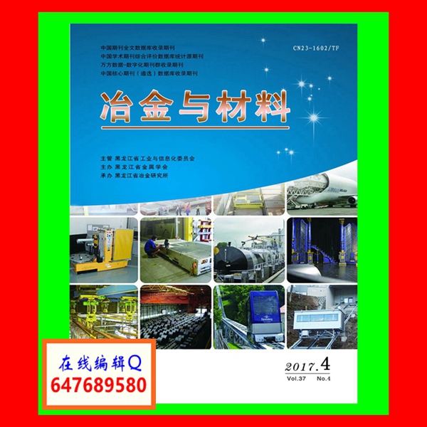 《冶金与材料》杂志是经国家新闻出版总署正式批准,面向国内外公开发行的国家期刊。主管部门:黑龙江省工业和信息化委员会,主办单位:黑龙江省冶金研究所,黑龙江省金属学会;国际标准刊号:ISSN 1674-5183,国内统一刊号:CN 23-1197/TF。主要栏目包括:实验研究、实验技术、专业论坛、文献综述、科技信息和企业管理等。